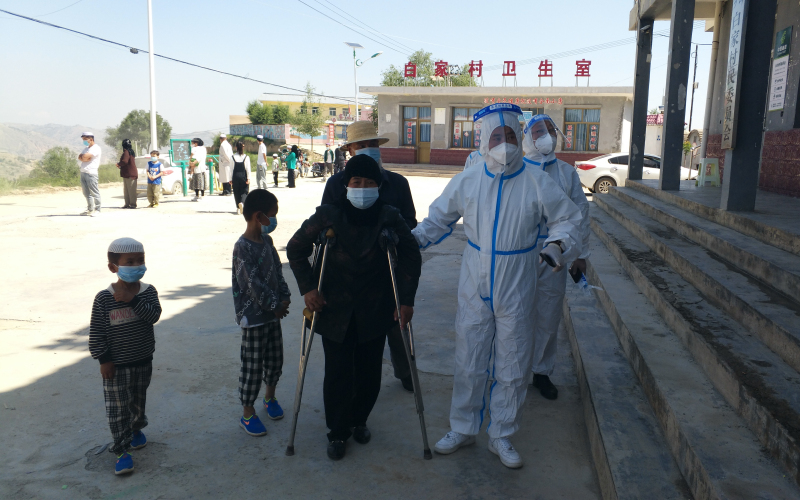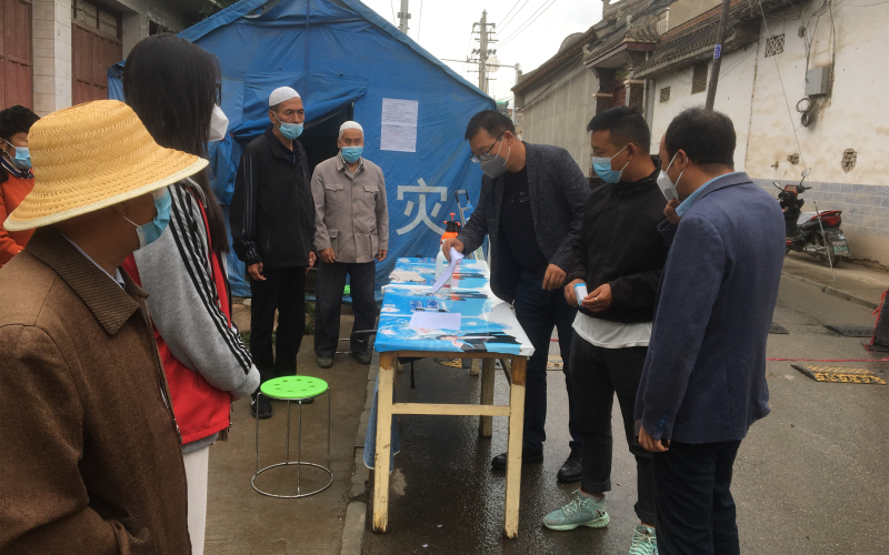 州药品检验检测中心副主任齐占文和马世雄、马磊、郭建华、章维新分别在东乡县龙泉镇和赵家乡白家村,配合当地村干部开展核酸检测、人员疏散、场地消杀、村口值守、封户管理等工作,确保疫情防控措施落实到位。